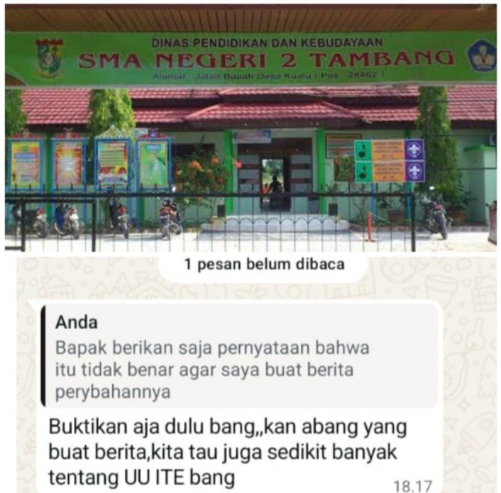 Pertanyaan publik semakin mencuat terkait penggunaan dana bos di sma negeri 2 tambang propinsi riau, dengan adanya sanggahan dari mantan operator sma negeri 2 tambang inisial (AM) terkait berita yang sudah di terbitkan media zengger-zengger.com ini sebelumnya