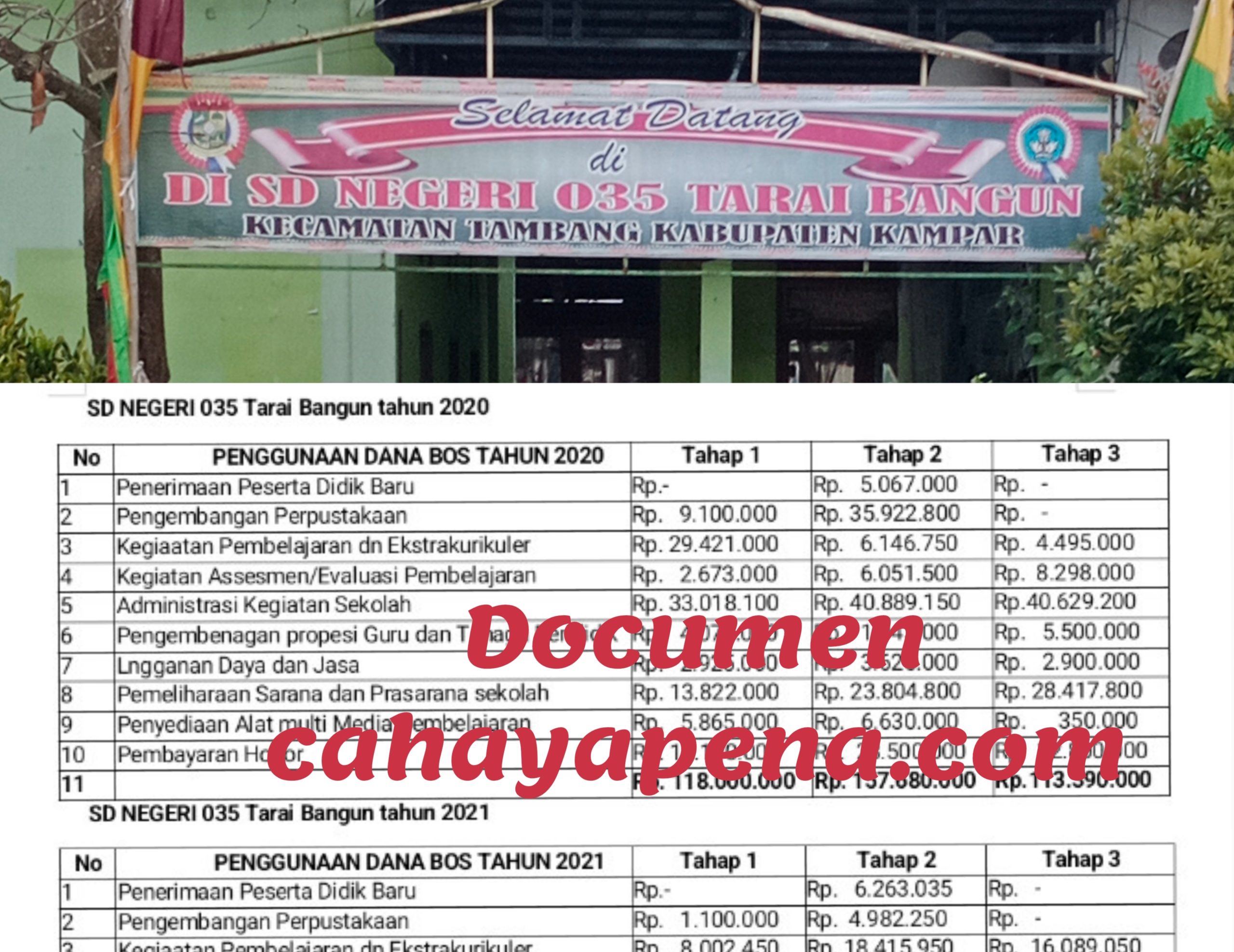 Pada saat Pandemi virus Covid-19 di sekolah SD Negeri 035 Tarai Bangun, anggaran dana bos tetap di salurkan dan awak media menyoroti 12 poin anggaran dana bos tersebut